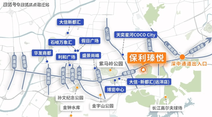 保利香山瑧悦府:项目位于“博爱路”一城核心主轴,接驳长江路、中山路等主干道。同时,广澳高速入口也是深中通道的博爱路出入口,未来经深中通道 40 分钟左右即可抵达深圳。