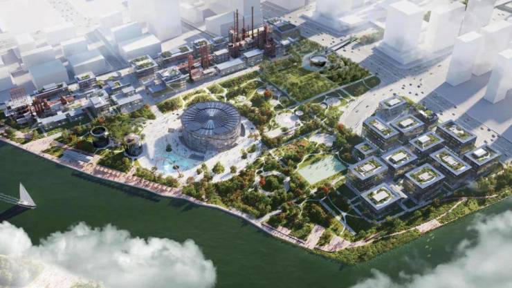荷兰MVRDV设计,距离项目一路之隔,由演艺中心、艺文商业街区、创意产业园和炼油厂公园四部分组成,未来将打造成集先锋艺术演艺、特色艺术商业、创新科技产业于一体的大运河文化艺术中心和科技孵化中心。
