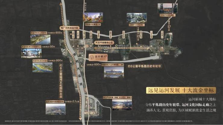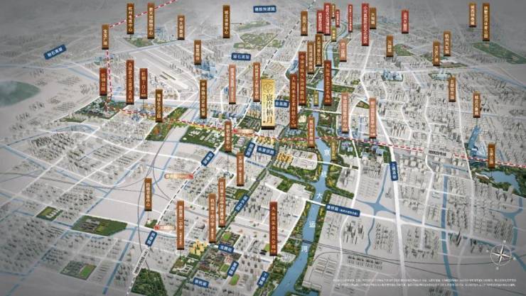 运河新城的总体规划,邀请了荷兰MVRDV建筑事务所、全球先锋的MVRDV和openfabrc等国际大师共同绘就。板块内汇聚了中国京杭大运河博物院(在建,直距约600米)、大运河生态艺术岛(在建,直距约800米)、大运河杭钢公园等十大地标。