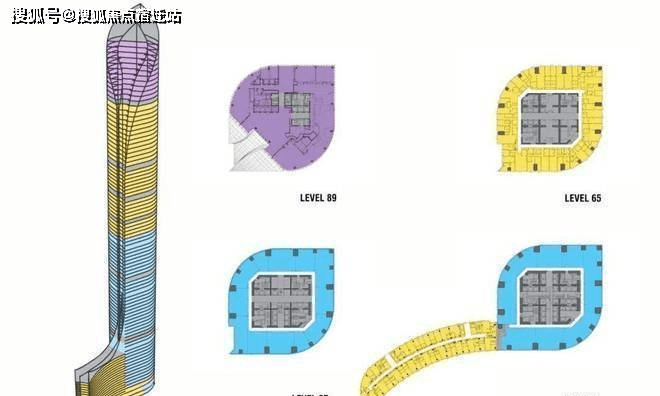 项目总建筑面积为393,208平方米,塔楼设计容纳多种功能,包括低层办公、中层精品酒店和高层豪华单/复式公寓。低层裙房中设置服务式公寓。塔楼顶部88层为观光层,设有一座“空中酒吧”。除主楼外,基地中还设有一座20米高的小型宴会/婚庆楼,面对南侧运河。这一设置将降低项目尺度,使之呼应运河、景观和周边建筑。