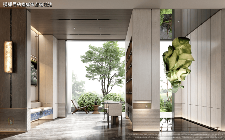 4、下沉式庭院,通过乌桕树、溪流构建一处安静的栖息之境,业主可在这里尽情放空。