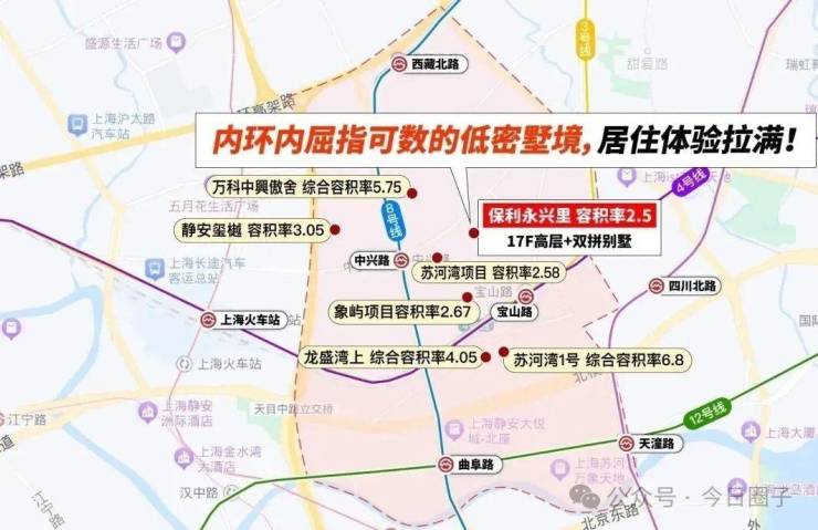 如今,内环内容积率低于2.5的项目已经屈指可数了。黄浦核心多是超高层+别墅的组合,静安内环则多是楼层20F以上的社区。