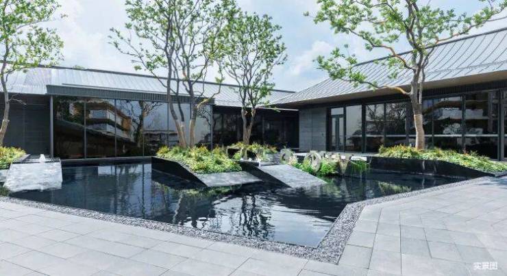 虞山下稀贵纯低密大平层,宅院⼀体,一层院落设计,山景、院景、室内相互融合,山水间写意东⽅智慧,引领常熟改善⼈居新理念。