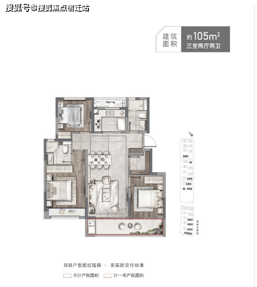 建面约105㎡户型图,仅供参考,最终以交付为准