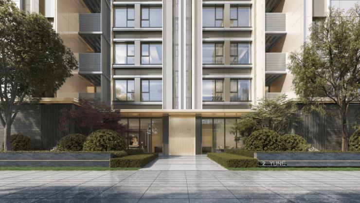 缦云上海能够征服魔都高净值人群的心,岂止是因为“大”,更是因为优越的产品力:铝板+玻璃幕墙+局部干挂石材打造的外立面。