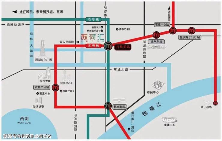 【项目交通】苏荷汇位于地铁 1、5号线打铁关站正上盖,乘坐地铁轻松转至杭州东站、杭州城站、杭州南站、萧山机场等交通枢纽;便捷畅达湖滨商圈、武林商圈等高净值商业区;同时,与地面交通链接亦可快速抵达未来科技城、滨江、钱江新城三大产业高地。🔸地铁1站到西湖文化广场/嘉里城(在建)🔸地铁2站到杭州东站/杭州大厦🔸地铁3站到西湖/嘉里中心。