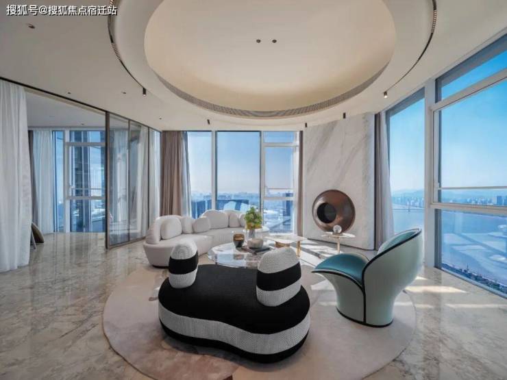 “全方位观景+全顶配奢装”的设计,让潮鸿既可以作为彰显成就的终极居所,也能成为商务会客的企业会所,满足塔尖客群的多元需求。