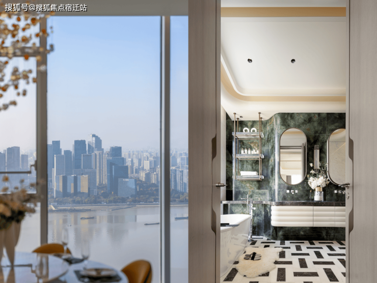 以邱德光执笔的约335㎡“云岫出江”户型为例,其核心是约29米长的L型270°寰幕视野,几乎将整个钱塘江与奥体地标“框”进了室内。站在客餐厅就像站在城市的观景台,江景、灯光、地标交织成一幅流动的画卷。