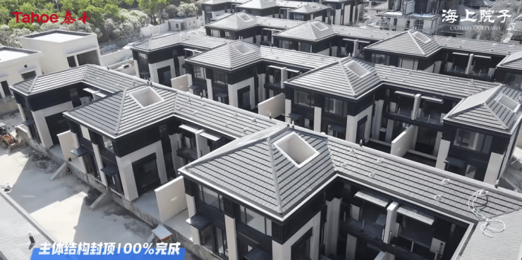 2019年3月,泰禾海上院子推出258套建面约100-210㎡的中式别墅,均价4.42万元/㎡,总价约430万元起。