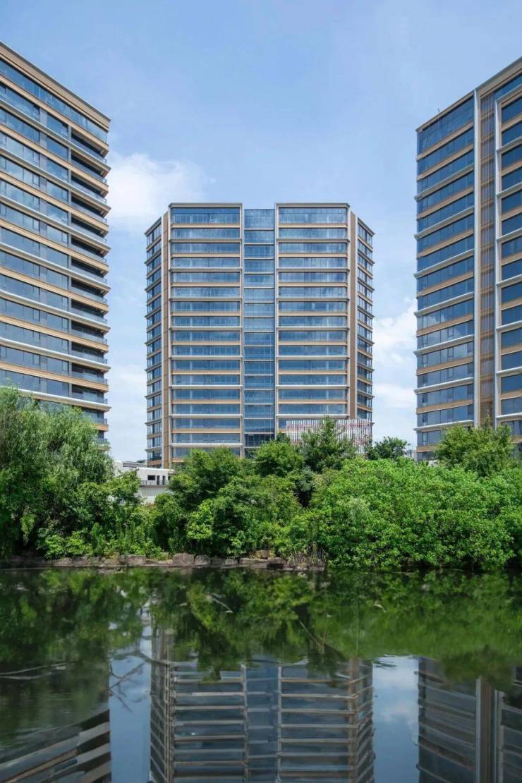 项目位于杭州市上城区江河汇板块,项目占地面积1.27万m²,总建筑面积7.12万m²,包括2栋大平层和1栋酒店,容积率4.0。项目外立面由享誉国际的日清设计团队精心打造,大面积的玻璃幕墙与铝板、石材巧妙融合,斜切的线条与香槟色的金属点缀其间,构成了江河汇版图上极为靓丽的天际线。大面积幕墙、铝板、石材经“HARRY WINSTON”钻石打磨般切割工艺,营建如水奔涌的轻盈线条、大小各异的丰富立面形态,立标极简内敛的当代风尚。