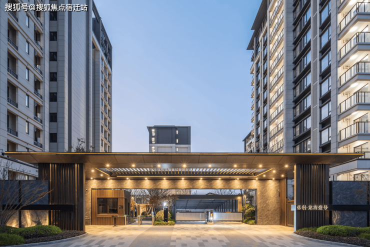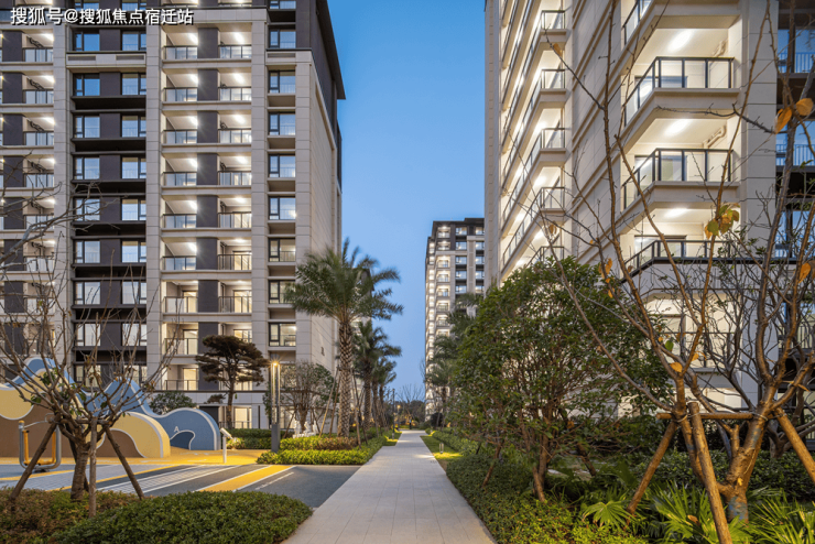 一座滨水大盘落成:大门头 、高端盘惯用的风雨连廊、精装地库、海枣椰等名贵树种、童玩乐园实景已经呈现。