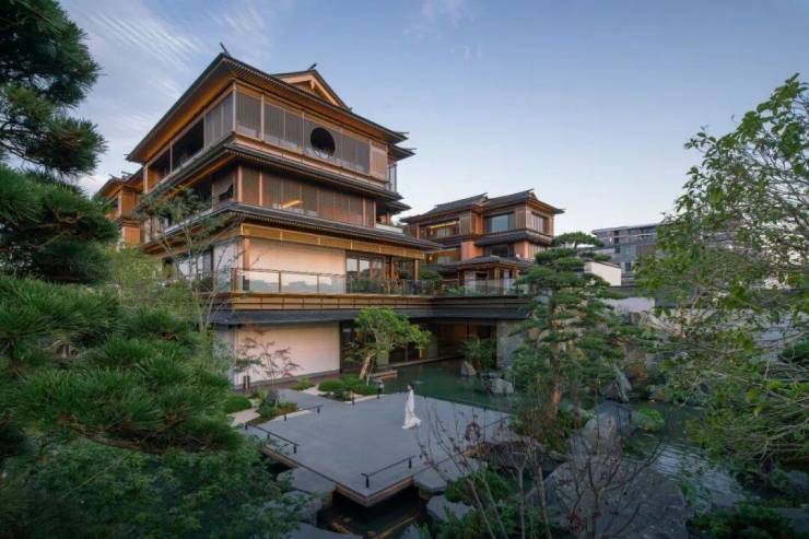 上层休憩,下层漫游,上层与下层之间能串联一起,室内与庭院之间能内外交融。宛若一个多向的场景分叙,首层空间以无界内外的方式充分发挥了庭院的价值,布局充满开放性和通透感。二层以上的空间则通过布置会客厅、茶室、宴会厅等空间场域,从而建立起一个上下贯通的空间语言系统。向上的建筑,是一个垂直山水;平面的庭院,是一个水平山水。