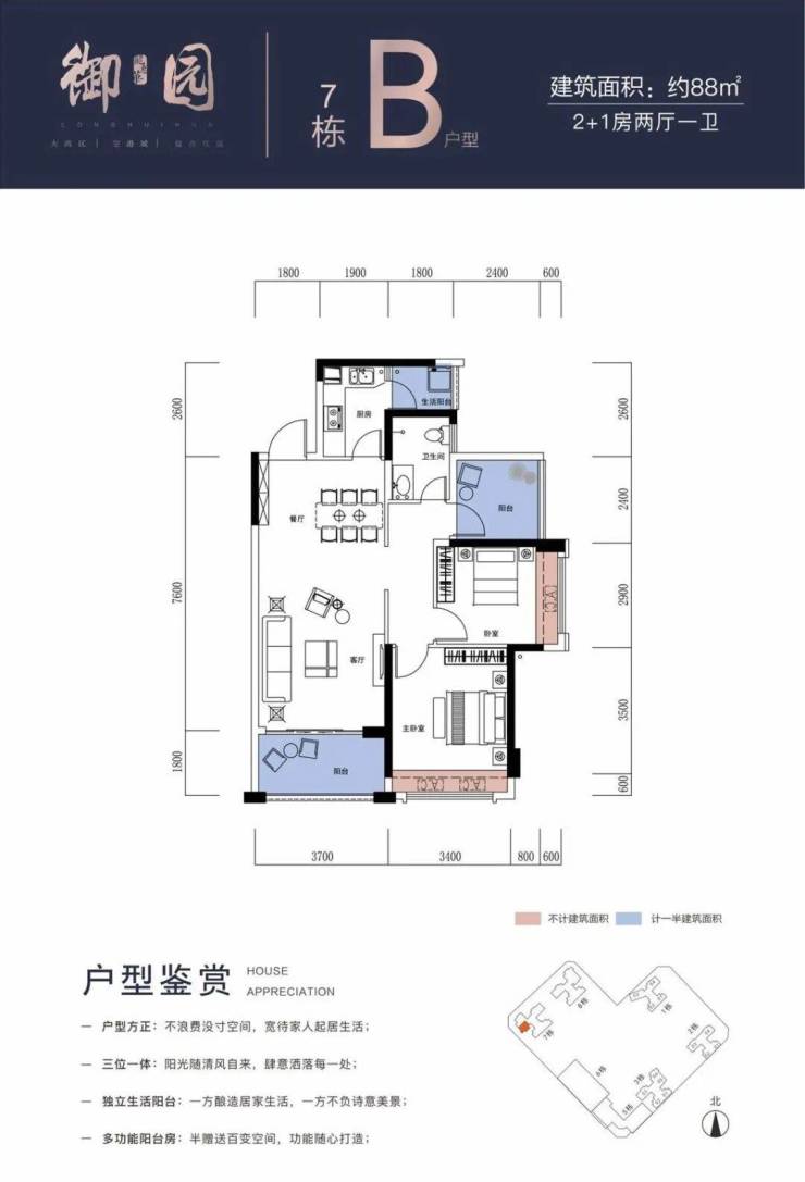 楼栋总数:7栋(3栋高层,2栋小高层,1栋酒店式公寓,1栋营销中心)