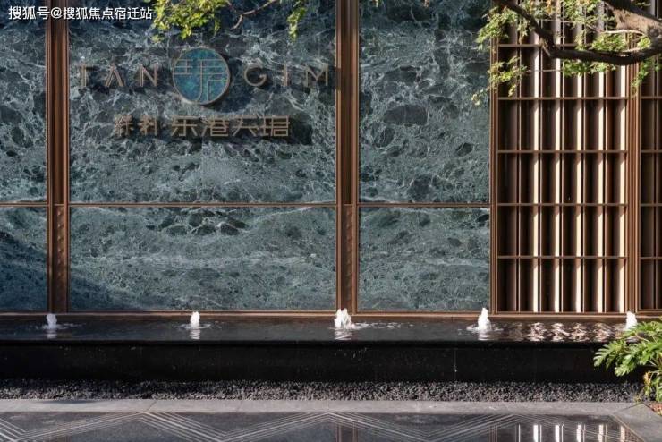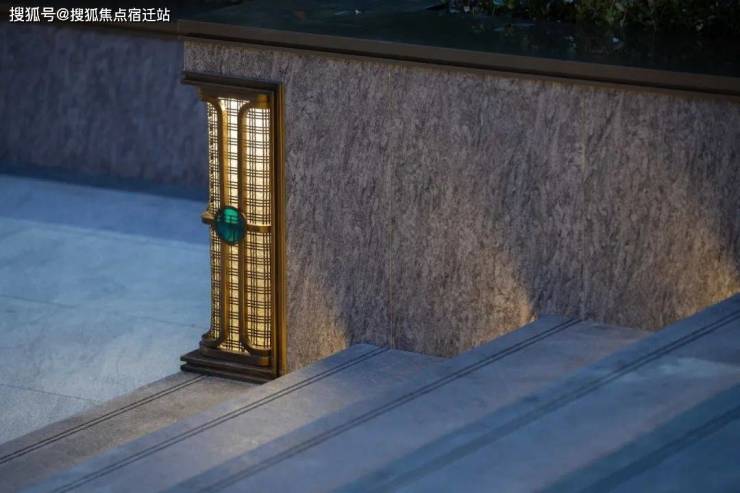 细节中皆蕴含着深厚的在地文化精髓,且融合现代审美。格栅的灵感,汲取自中国古典建筑中的“八字墙”,这一传统元素不仅勾勒出家的轮廓,也展示出儒雅风范的传承与和尊贵的地位彰显,而镶嵌于格栅之上的奢石的logo则成为这条归家动线上最亮眼的点睛之笔。