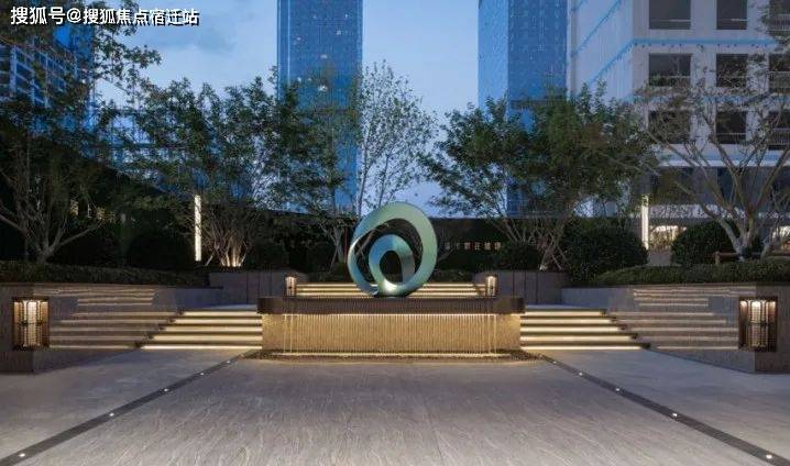 现代典雅的社区大门,以其流畅的优雅弧线勾勒出归家时分的仪式感,三步台阶的设计,不仅引领着归家的步伐,更寓意着生活的稳步上升和不断进取。大门之侧,黑松树挺拔而立,环绕于社区大门的三面迎宾水池,碧波荡漾,与潺潺流动的活水相映成趣,蕴含着财源广进、福泽绵长的美好寓意。