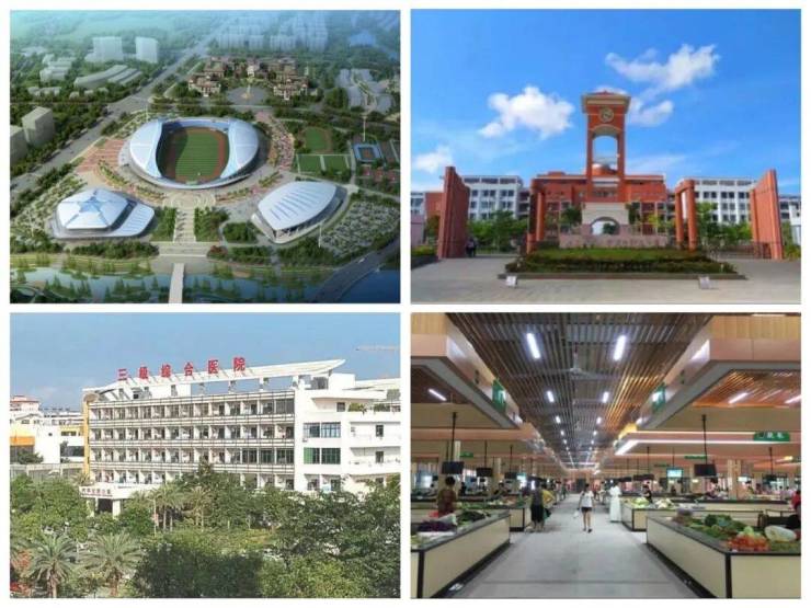 文化体育广场、大型综合商超、东星农贸市场、万宁市人民医院(综合三甲);