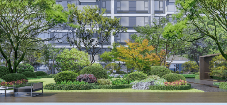 ② 园林景观全面升级。精心雕琢的园林,四季皆有景可赏,主题景观别具一格,春有樱花、夏有紫薇、秋有丛生乌桕、冬有香樟,色彩随季节变幻。让您在家门口就能享受大自然的馈赠。