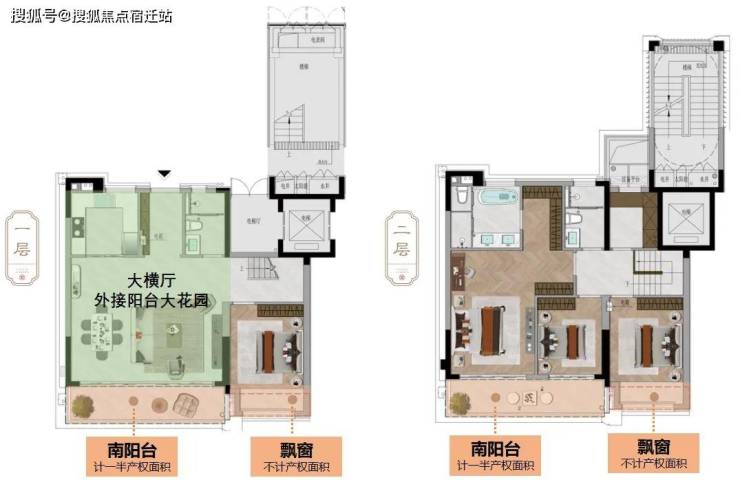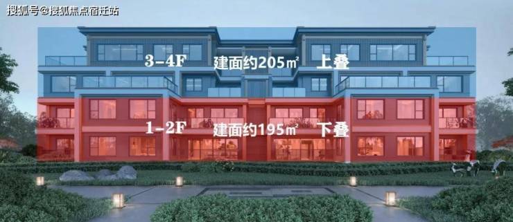 对比北地块,南地块建面约150/155㎡的上叠,打破叠墅难有的大尺度面宽,将原来的客厅升级为横厅,采光通风效果更佳,并且二层原露台空间变为卧室,更加实用,适合多口之家。