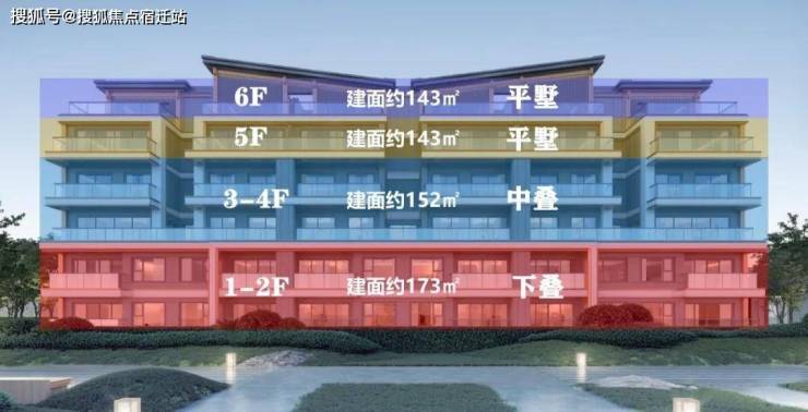❖第三种6F墅:靠近社区中轴的上下叠各两层,中间两层做平墅,很好地满足了不同人群。