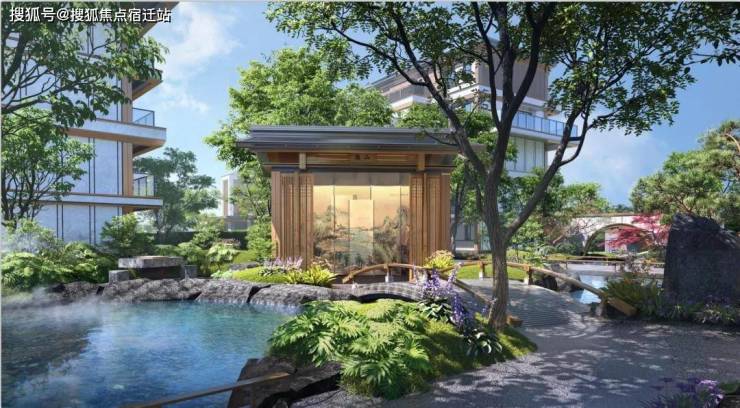 景观方面,大量采用朴拙的原生石材与精致的金属材质相结合,营造古朴与雅致融合为一的意韵。同时,石畔流泉细语,庭院幽深为邻,松隙小径回绕……营造一种隐世又不离烟火气的中式禅境。