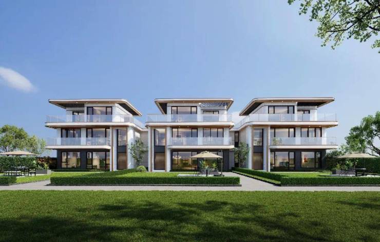 登科溪悦以“现代轻奢”为设计理念,深灰色真石漆与金属质感勾勒建筑轮廓,大面积玻璃幕墙让光影与自然共生。项目仅打造40套限量别墅,涵盖类独栋、联排与洋房三类臻品。 每一席皆以空间哲学、生态美学重构理想生活,堪称城市别墅的收藏级作品。