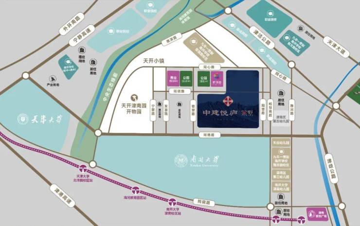 除了惊人的产品配置,中建悦庐·棠墅的地理位置也十分优越,与南开大学仅一路之隔。