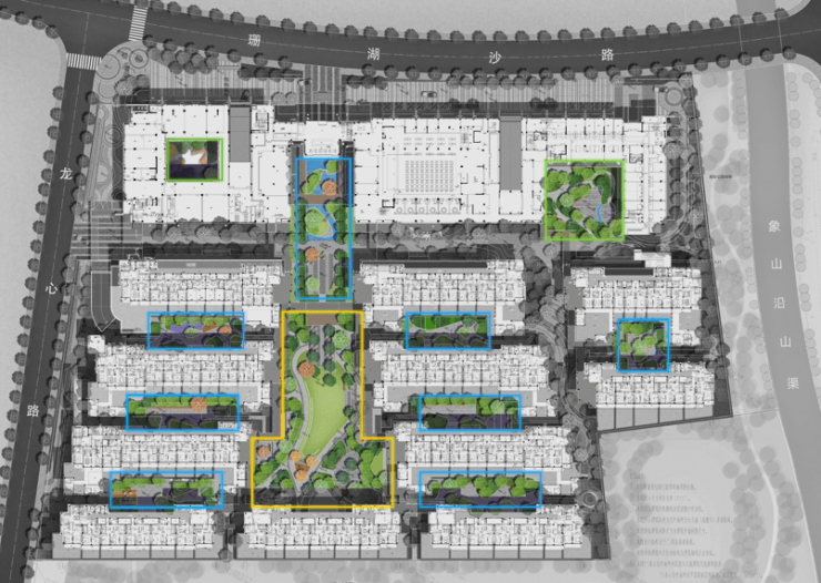 借助连廊、廊架等空间将室内外充分融合,通过全区功能划分,形成核心花园和“邻里”、“亲子”、“康养”、“园艺”等八大主题花园和童真乐园相互交融缠绕的布局,努力营造适合走出户内、适应社交的氛围。