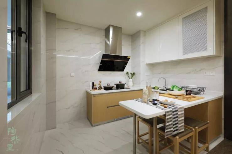 颐乐公寓D1户型则通过光与色彩的融合,营造一种岁月安宁、雅致闲然的生活。尤其令人称赞的是开合自如的厨房,与餐厅一体化设计,宽绰中显实用,同时配备水槽式洗碗机、侧吸式油烟机等。