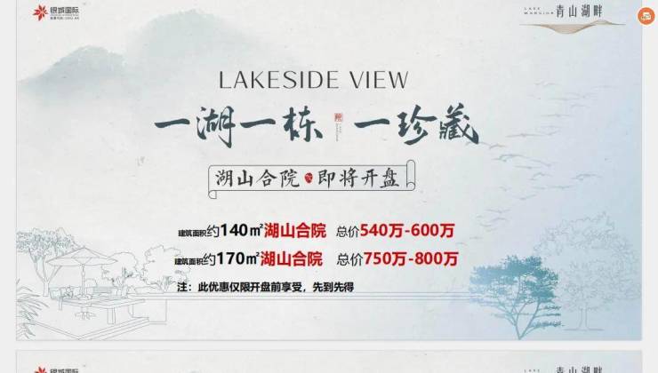 一线青山湖·建筑面积约140-170㎡湖山合院火热珍藏中