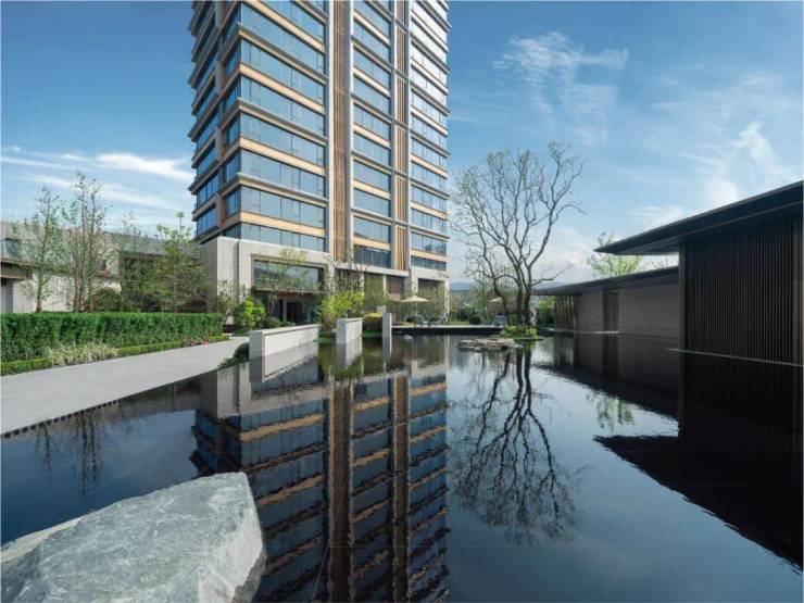 项目位于杭州市上城区江河汇板块,项目占地面积1.27万m²,总建筑面积7.12万m²,包括2栋大平层和1栋酒店,容积率4.0。项目外立面由享誉国际的日清设计团队精心打造,大面积的玻璃幕墙与铝板、石材巧妙融合,斜切的线条与香槟色的金属点缀其间,构成了江河汇版图上极为靓丽的天际线。大面积幕墙、铝板、石材经“HARRY WINSTON”钻石打磨般切割工艺,营建如水奔涌的轻盈线条、大小各异的丰富立面形态,立标极简内敛的当代风尚。