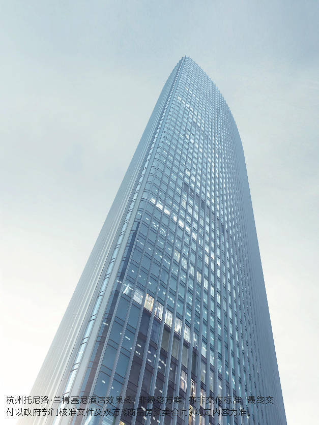 【建筑规划】:T1、T2为250米双塔楼(60层,T1写字楼、T2杭州托尼洛·兰博基尼行政公寓)、T3裙楼(12 层,杭州托尼洛·兰博基尼酒店)