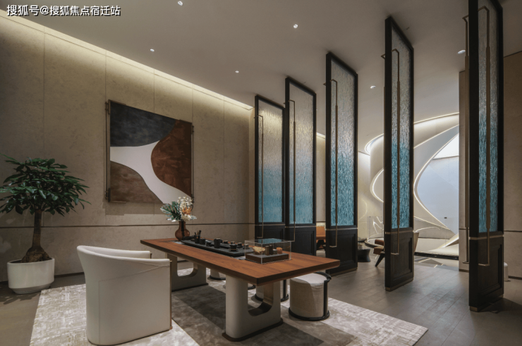 地下一层入户大堂,从车库入口到地下大堂都考究之至,不负杭州大平层标杆作品之名。等候厅每个区域都精心打造,一路仿佛在光影空间中穿行,尤其入户之时的星空穹顶设计,更如同身处灿烂星空之下,浮躁的心瞬间沉淀下来。