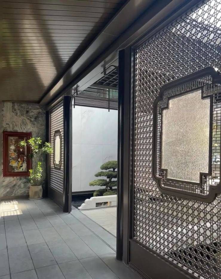 采用了四水归堂,水聚天心的空间设计理念,展现开合有序的空间变化,将光、风、雨、雪等自然元素融纳其中,当身处院内,与自然的对话也在这四方院内悄然发生,将中式韵味表达的淋漓尽致,给业主们带来富有仪式感的归家体验。