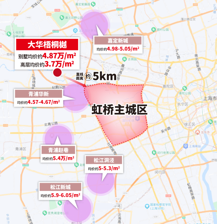 今年大虹桥的上车门槛不断加码,青浦徐泾联动价已攀升到6.95万/㎡,辐射板块如青浦赵巷、嘉定新城,松江新城等,清一色均价来到5万+。