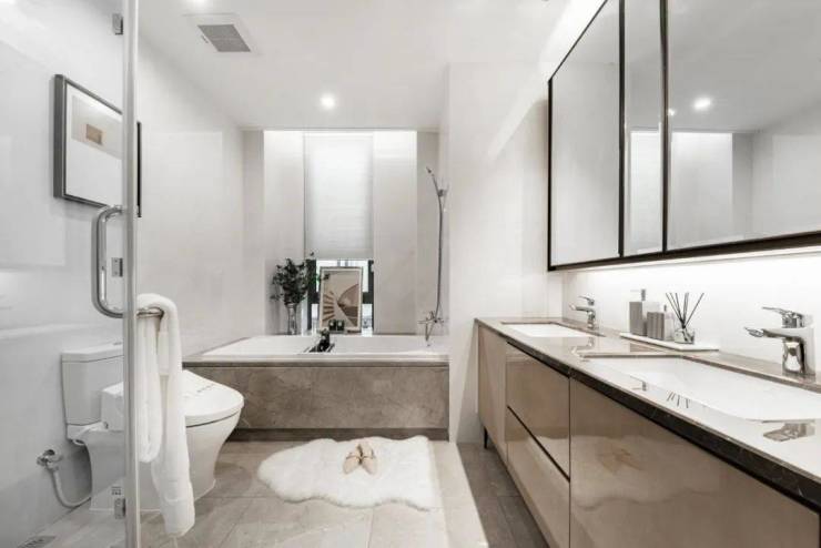 加之独具设计感的卧室背景墙、奢阔L型衣帽间以及拥有转角玻璃窗设计的卫生间,整体居住品质感跃然可见。此外,云栖名筑保姆房和洗衣房也是标配,双入户的设计,敬享尊贵。
