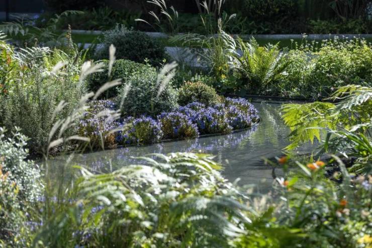 形象取决于空间,设计在花园里做的不仅仅是水,而是创造空间,让其流入每栋建筑,并可以带领人们从一个地方到另一个地方。水没有任何颜色,但如果把深色物质放在水下,它就会变成镜子,这也是设计想将建筑整合进水中的创意。