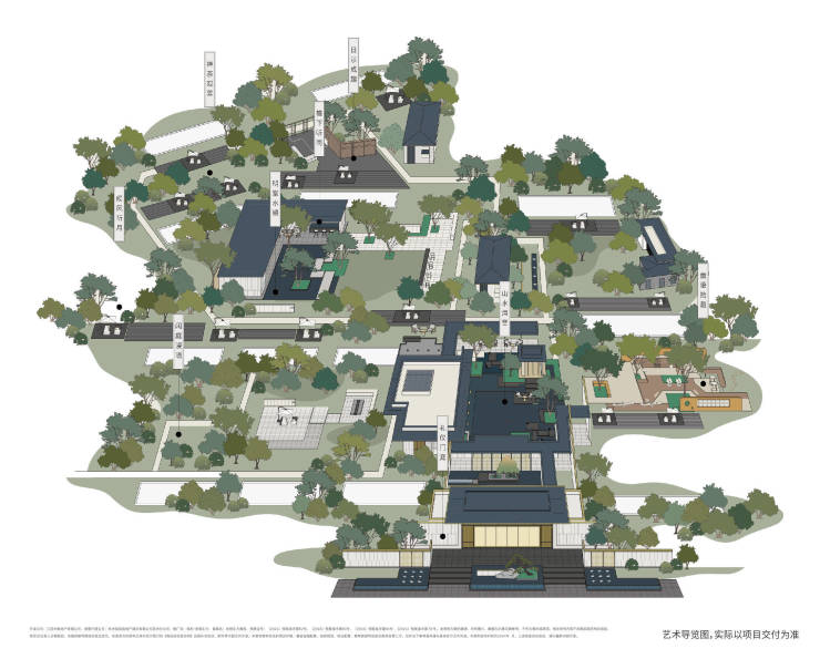 溯源《西园雅集图》蓝本,汲取江南园林构园手笔,以东方人文礼序空间,巧妙地将东方园林的院落、巷道、亭台相融合,匠呈山水隐园——约1000㎡山水园林景观,以及礼仪门堂、礼序厅堂、疏影轩堂,再现江南游园意境,打造具有东方精神符号的昆山人文会客厅。