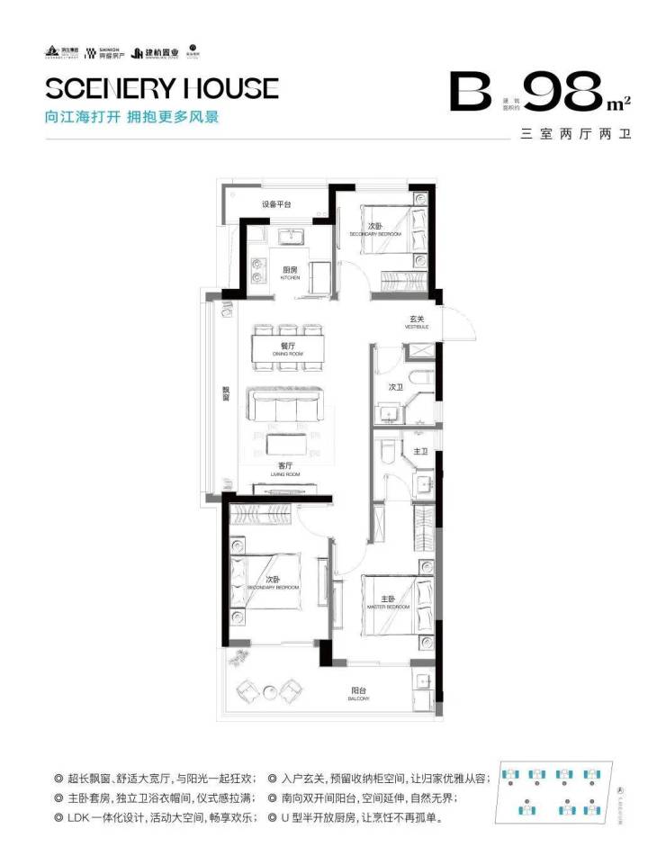 建面约98㎡户型,也是河印观翠湾的王牌户型。