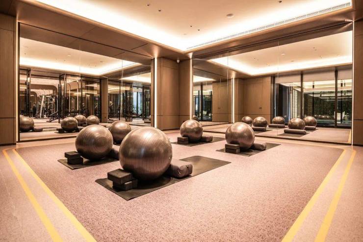 漫游四季 酣畅舒放恒温泳池空间以“水”为设计灵感,用蓝色作为主色调,营造出水面一圈圈水纹渐渐散开的自由之意,,且无惧风雨四季皆可畅游,优雅瑜伽 放松心境随时在瑜伽区进行一场久违的修炼,沉浸轻柔的音乐中,感受内心平静,舒缓身心!