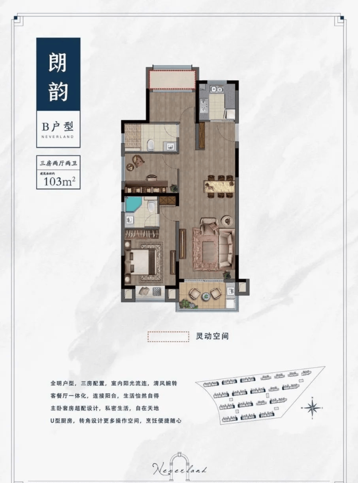 三房配置,主卧套房设计带飘窗,客餐厅一体化,空间利用率更高!