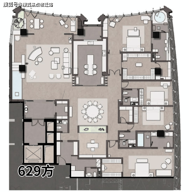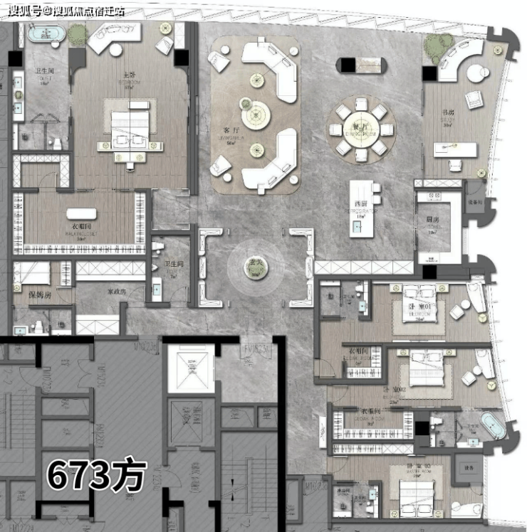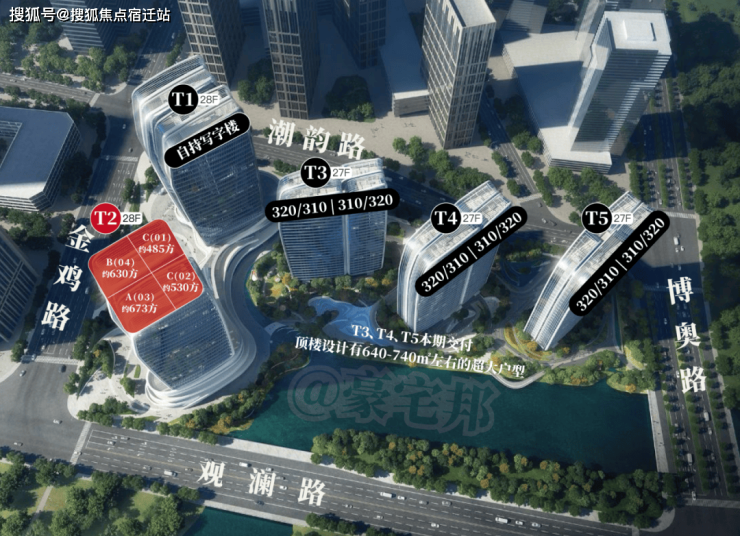 T2「前帆」:总高118m,24F,层高4m,设计485-673方平层公馆;