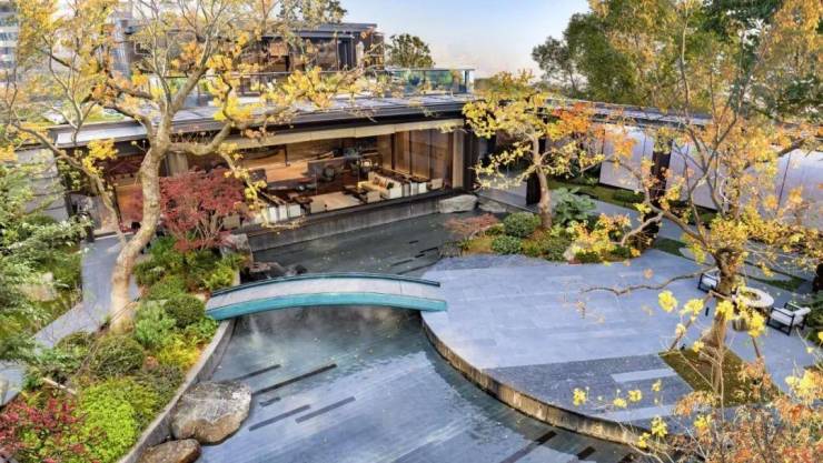 项目深叩文化厚脉,追溯东方诗意人居,以《兰亭集序》为灵感,勾勒出“曲水流觞”的大美意境。构筑出游目骋怀、惠风和畅等大美园境,以风雅场景和山水相互呼应的形式,打造可居、可游、可隐、可憩的理想境地。