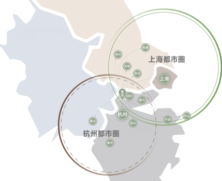 安吉背靠上海、杭州双都市圈,地处长三角一体化生态腹地。杭长高速、申嘉湖高速、沪渝高速、商合杭高铁、宁杭高铁二通道(规划)等,畅连繁华与自然。