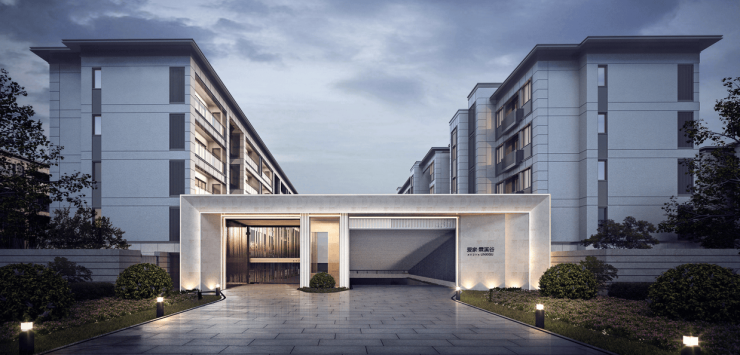2)连接洋房和联排两大空间的景观次轴:归家景墙,尊贵私属感