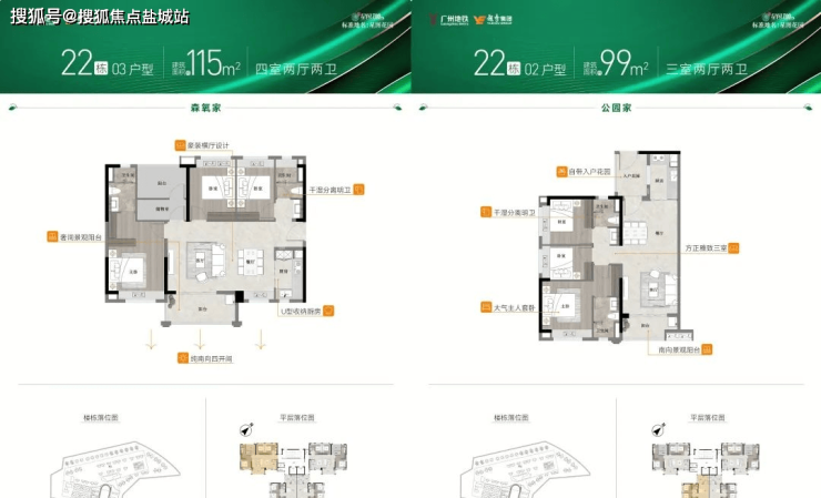 全南向2梯4户独栋小高层,建面约99-115㎡全南向低密舒居;在售户型如下