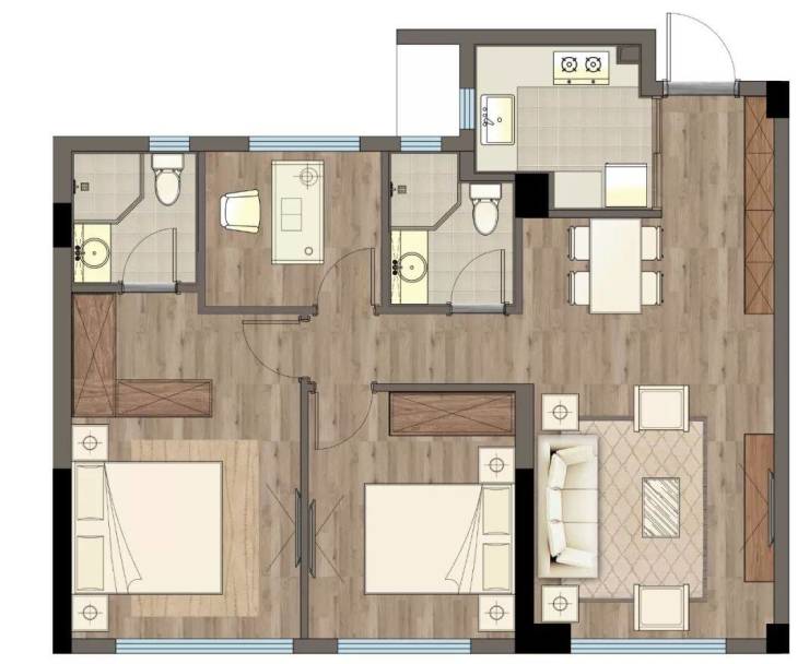 整体看下来,户型方正合理,基本没有浪费空间,再辅以贴心的收纳空间和超大的面宽尺度,居住的舒适感立马提升了一档。