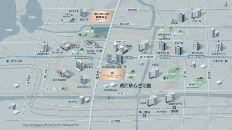 昆山文化艺术中心、体育中心、政务中心坐落,咫尺即达,纵揽城市发展活力,鉴证城市资源的向心力。