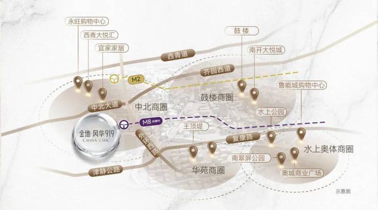 金地・风华 919 所在的中北板块,有着兼具城市繁华与低密稀缺的双重价值。它作为距离南开核心区的环城首个醇熟发展区域,历经 20 年的精心雕琢,已然成为配套成熟的宜居之地。这里有永旺、宜家、大悦汇等商业巨头汇聚,构建起一站式的繁华生活圈,购物、休闲、娱乐统统在家门口搞定。双地铁的加持,更为日常出行注入便捷与高效,轻松畅达城市各处。