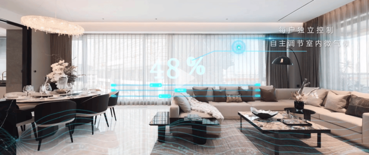 项目更是在建筑“碳中和”的领域向前迈进,所选用的空气源热泵系统、毛细科技系统以及更大的玻璃分隔面等,都代表了德信在用更大的成本投入构建更高的市场标准体系,