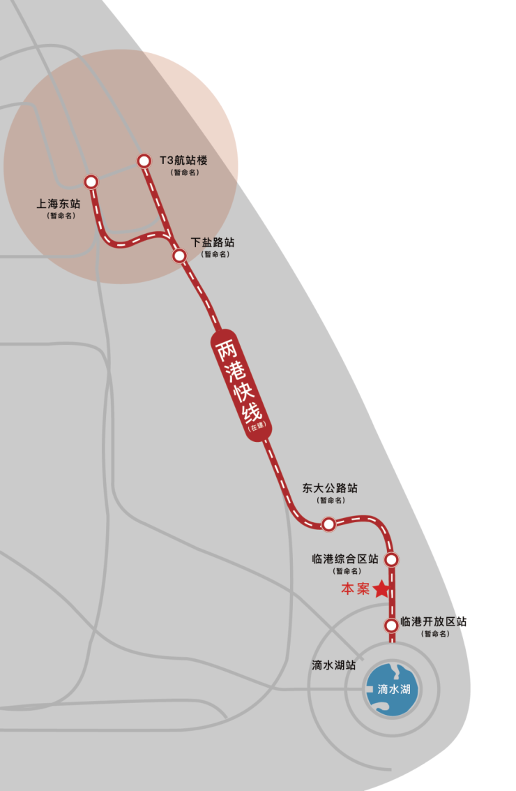 •项目距离在建中两港快线地铁开放区站约900米,约15分钟至浦东机场、约30分钟至张江、1小时可至虹桥枢纽;